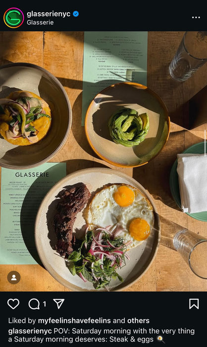 I serve as a one-woman production house for a Brooklyn-based restaurant and events group, overseeing content and social media for Glasserie, Glasserie Events, and Radio Star in Greenpoint.